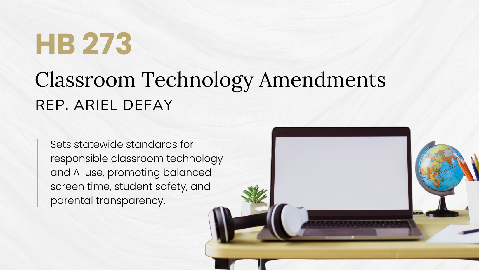 The bill establishes clear, age-appropriate guardrails for the use of technology and AI in schools. It limits excessive screen time in early grades, improves transparency so parents know how technology is being used, and strengthens protections around student data and privacy. Just as importantly, it makes clear that artificial intelligence should enhance instruction—not replace the essential role of teachers.